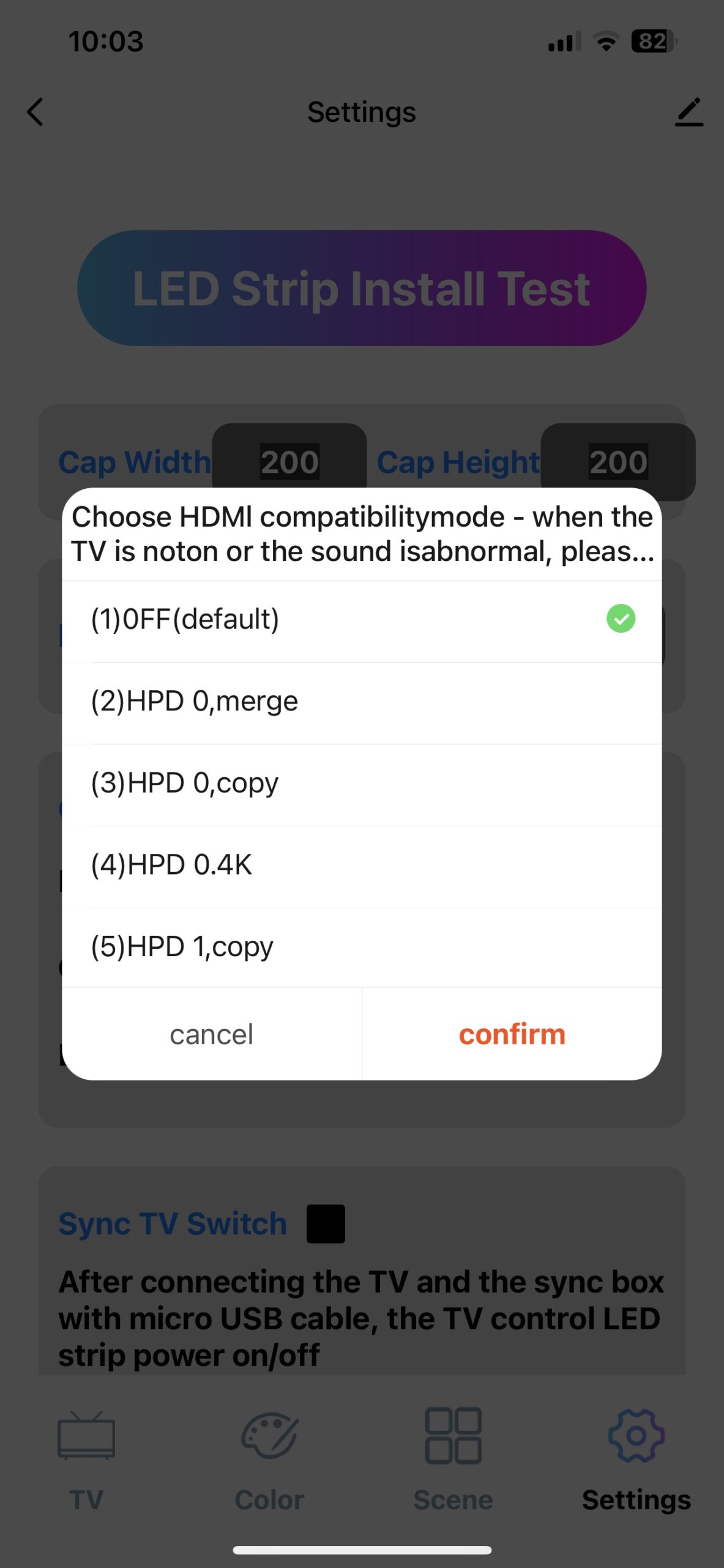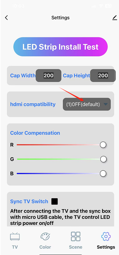APP > Setting > HDMI Compatibility 설정을 변경합니다.