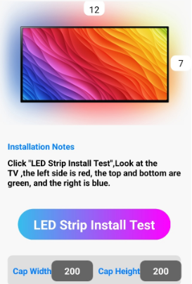 TV상단, 측면숫자는 12=1.2m / 7 = 0.7m로 설치된 스트립의 길이를 의미합니다.