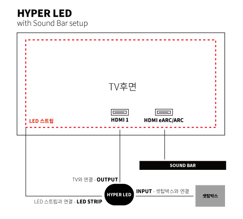 SOUND BAR는 싱크박스와 별개로 TV와 다이렉트로 HDMI eARC/ARC 포트에 연결합니다.